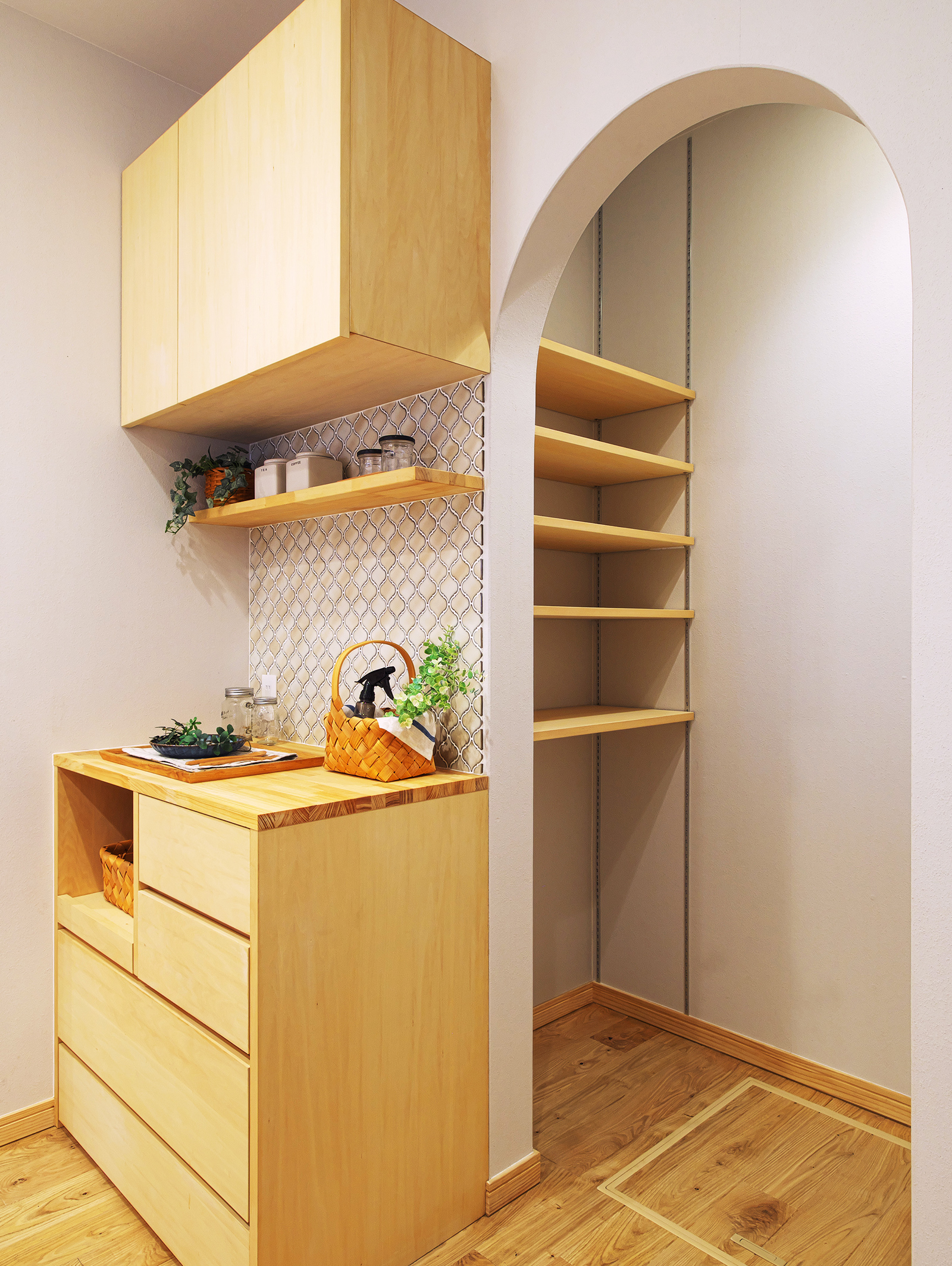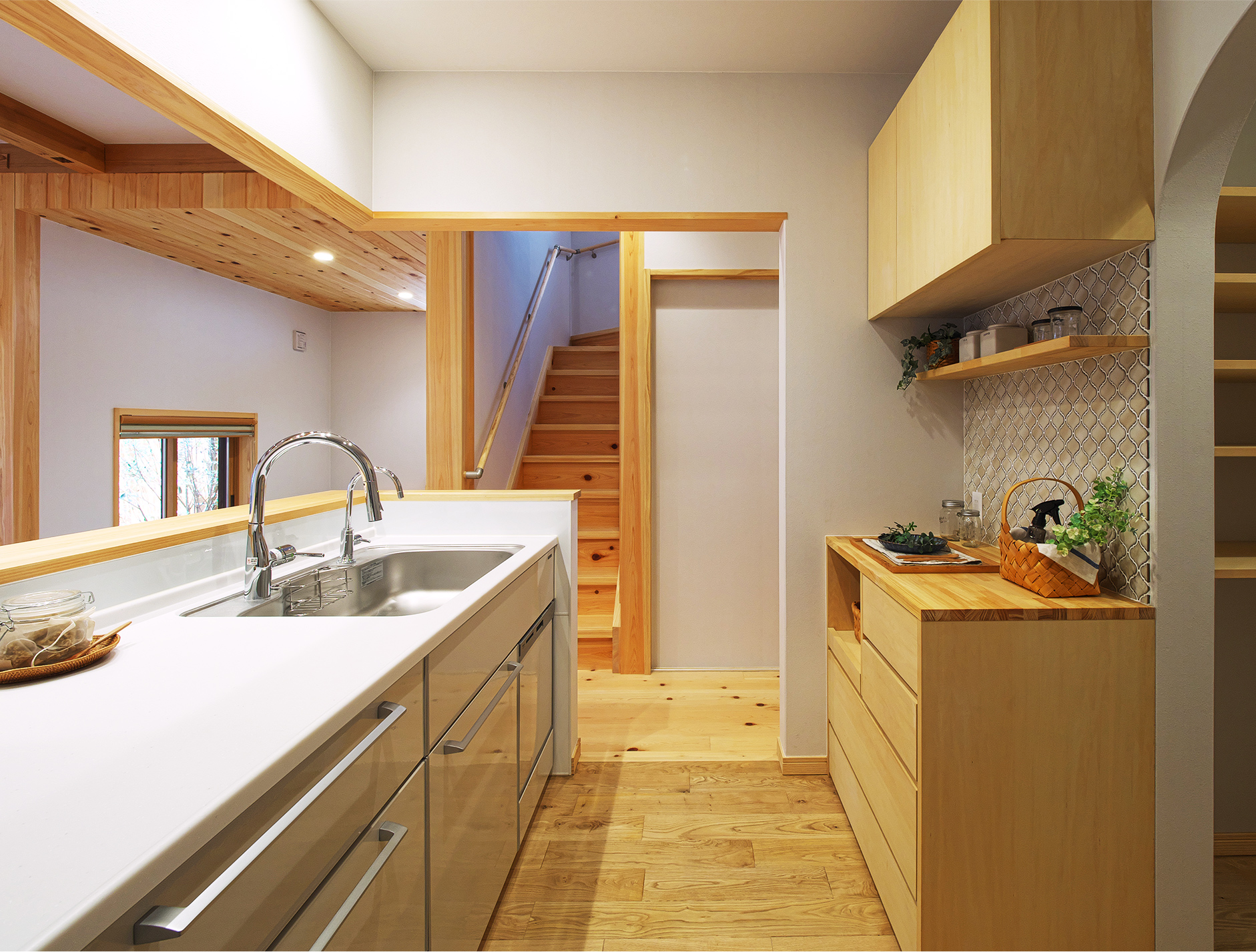 効率よく家事が行えるように、キッチンにはパントリーを設け、収納スペースをたっぷりと。