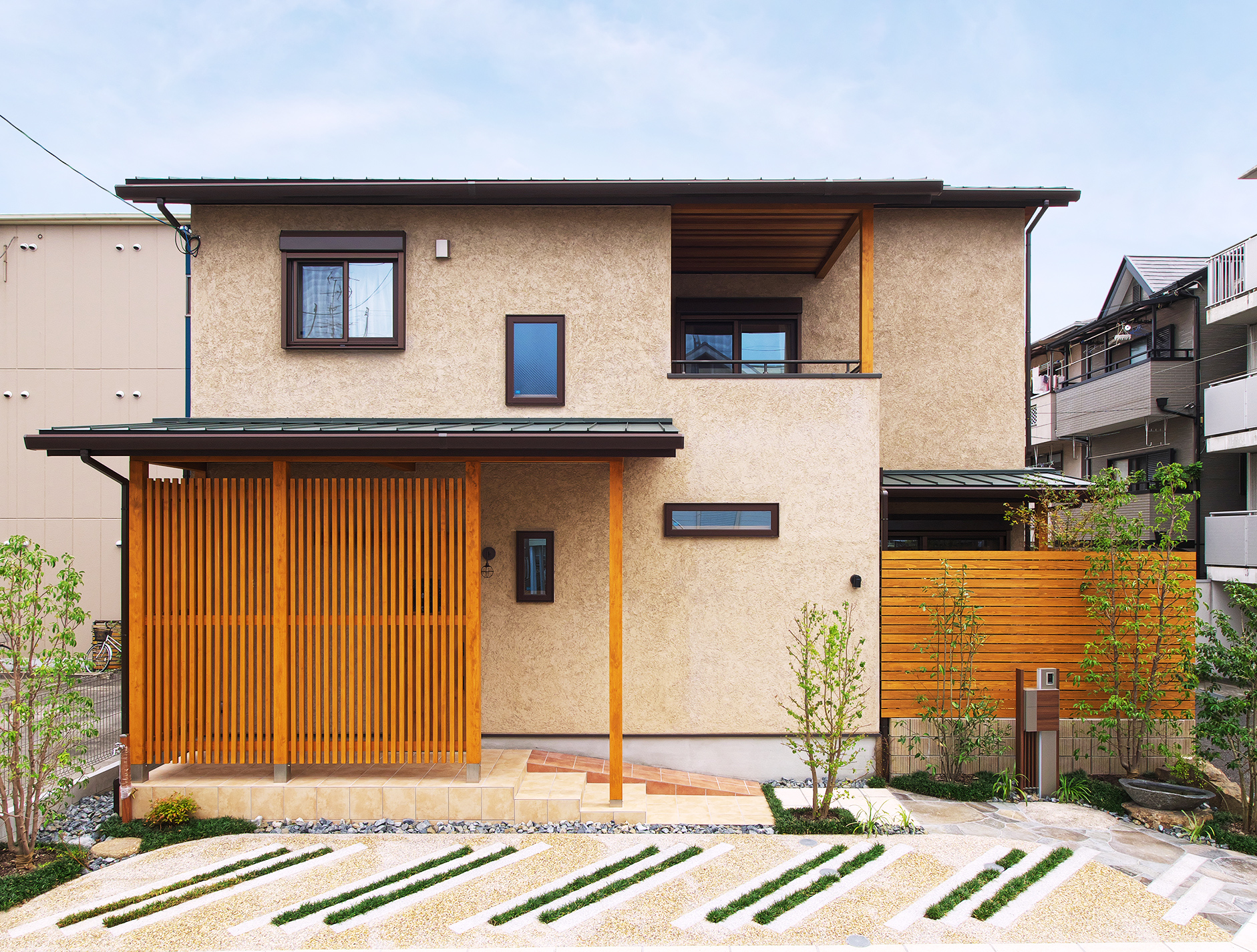道路と面した南側に小さな庭を設けました。